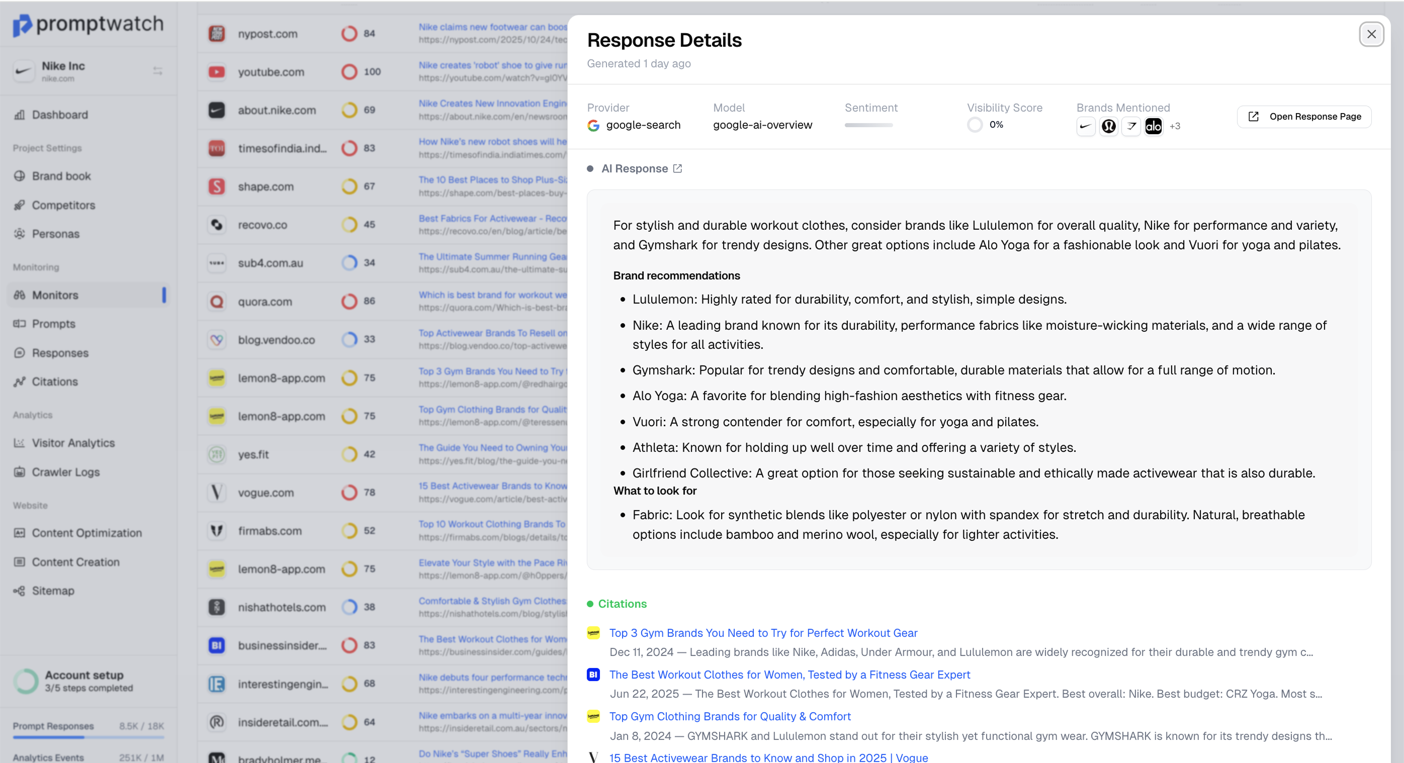 2. Once the LLM gives its response, our automation scrapes both the prompt, responses, and citations in the conversations.