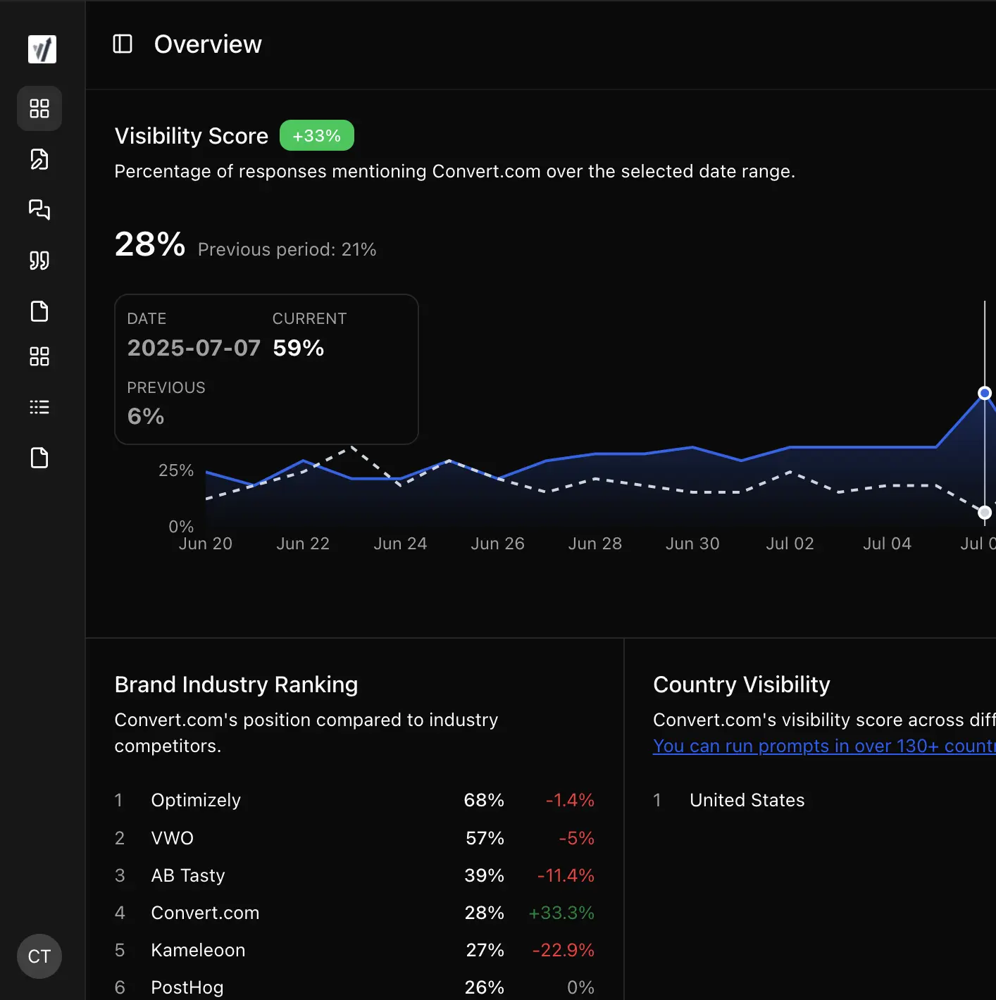 - Persona & geography‑based prompt tracking: Allows monitoring of user prompts filtered by segment and location.