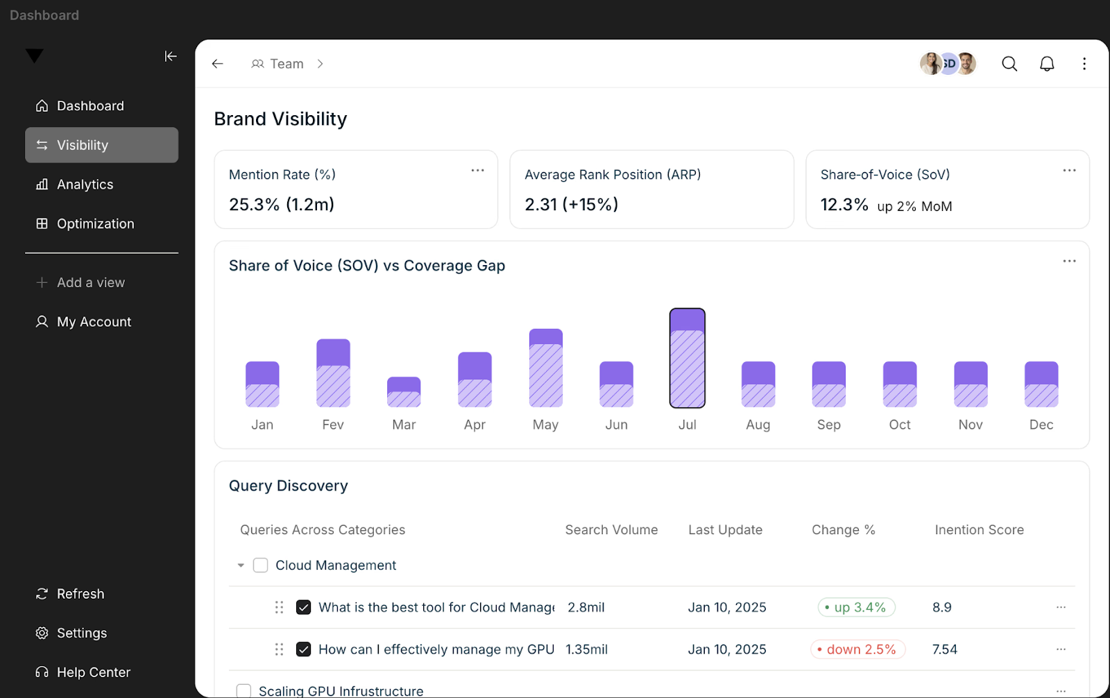 - Monitors and optimizes visibility across all major AI search platforms.