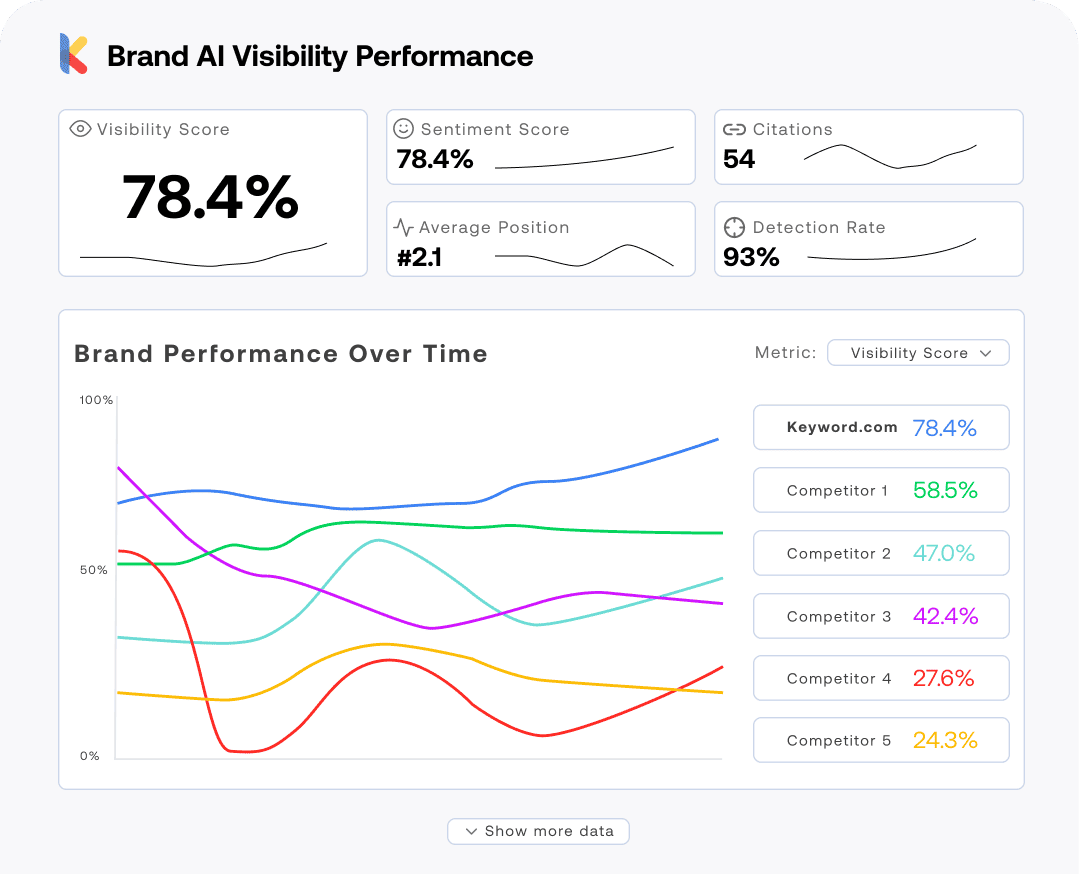 Keyword.com is a proven SEO rank tracker that now extends into LLM search visibility. Alongside keyword rankings, it monitors brand mentions across platforms like ChatGPT, Perplexity, and Gemini, showing where your content gets cited.